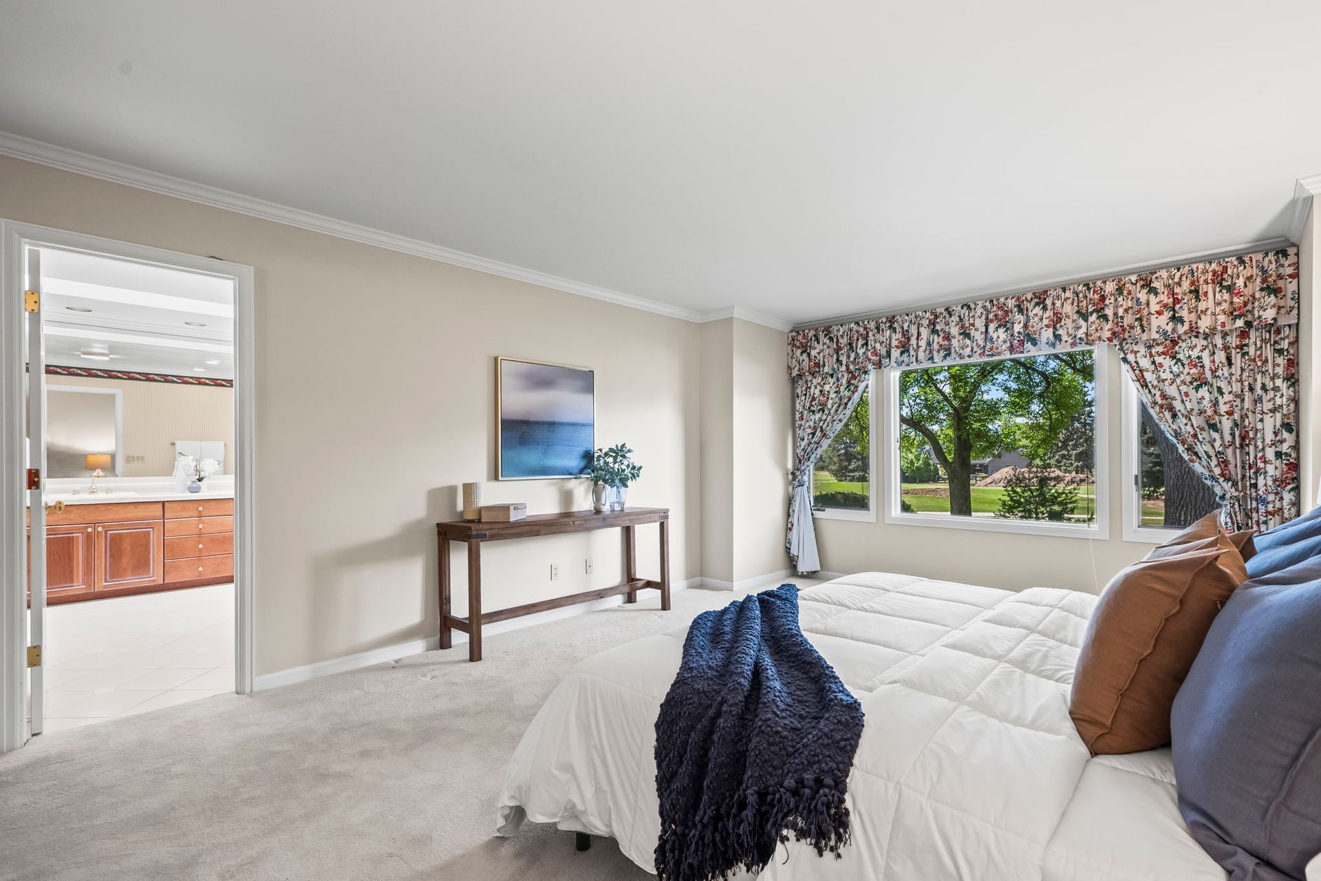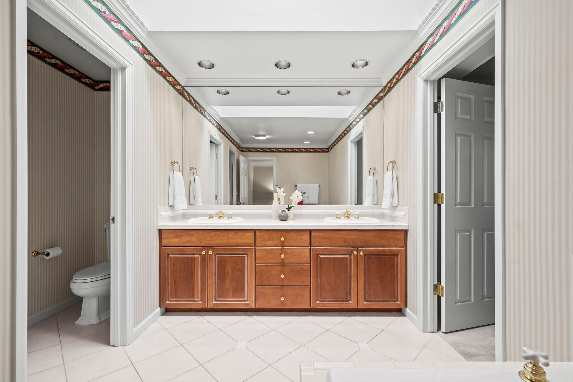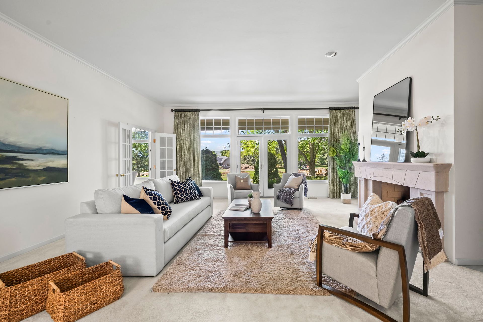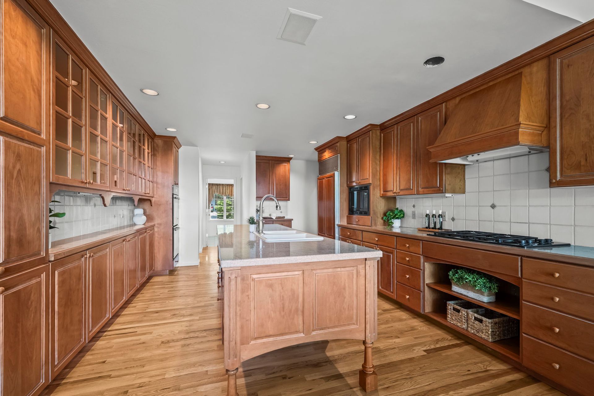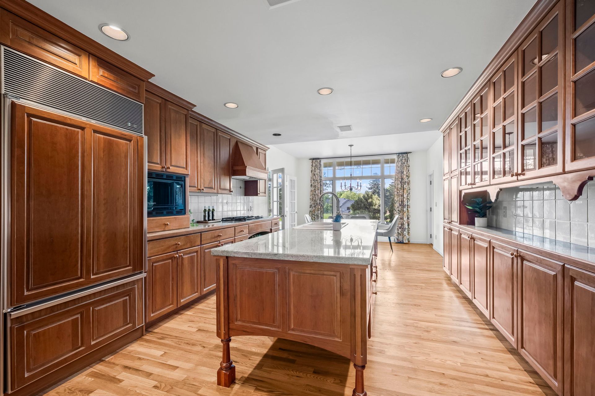 Step inside to a thoughtfully designed main-level living space with generous sized rooms to spread out in, including a large great room with stone gas fireplace, formal dining area, spacious eat-in kitchen with rich Cherrywood cabinets, center island, gas stove, double ovens, Sub-zero refrigerator and a cozy sun-room. Enjoy direct access to a peaceful back patio to enjoy the view. Large picture windows invite in natural light while framing views of the mature landscaping that surrounds the property.